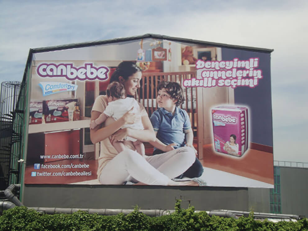 Bina cephe giydirme, billboard ve branda baskılarında yüksek dayanıklılık.